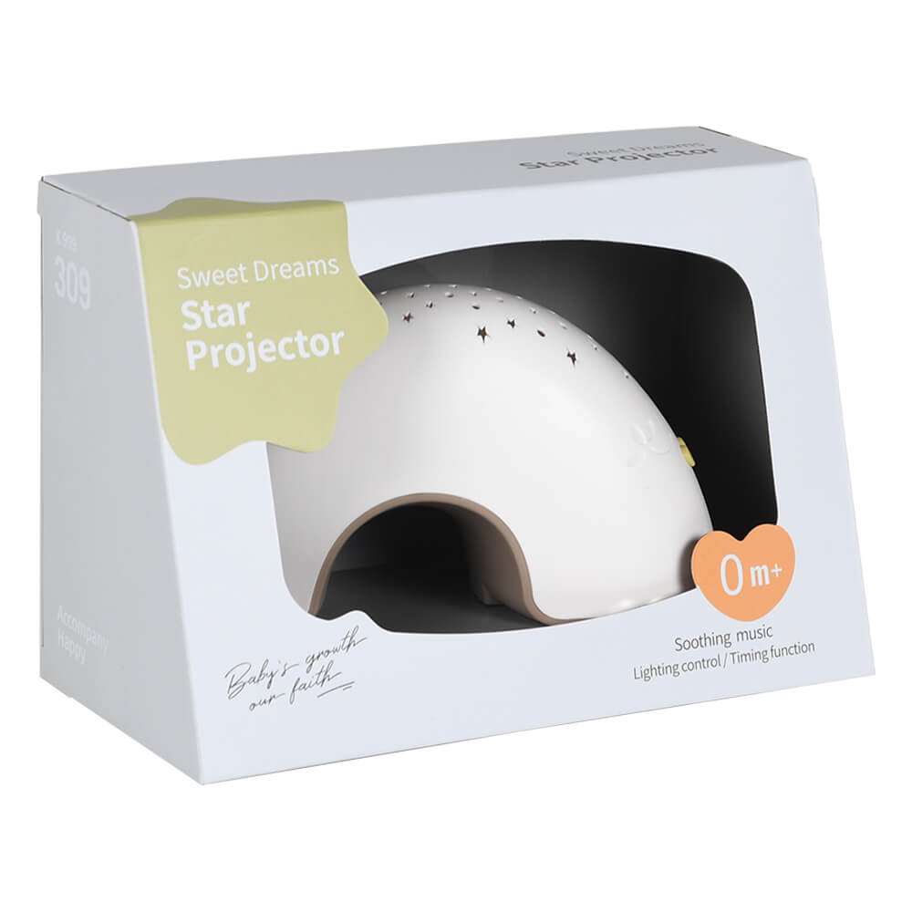 Ο προβολέας Sweet Dreams συμβάλει στη χαλάρωση του μωρού σας, ώστε να κοιμηθεί πιο εύκολα και γρήγορα, καθώς προβάλει αστεράκια και μετατρέπει το δωμάτιο του σε κάτι παραμυθένιο. Διαθέτει, επίσης, μουσική, ήχους και φως με σκοπό να απασχολούν το παιδάκι σας και να το διασκεδάζουν, αλλά ταυτόχρονα μαθαίνει στο παιδάκι σας να αναγνωρίζει σχήματα και χρώματα, αναπτύσσει ακουστικές και οπτικές αισθήσεις.Μπορείτε να το χρησιμοποιείται από νεογέννητο.Ο προβολέας τροφοδοτείται από μπαταρίες 3×1,5V «AAA» (Δεν περιλαμβάνονται).Για να απενεργοποιηθεί πατάτε παρατεταμένα οποιοδήποτε κουμπί.Ευρωπαϊκές προδιαγραφές ΕΝ71, CE.