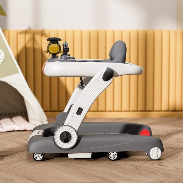 ΣΤΡΑΤΑ TRAIN 3 ΙΝ 1 GREY Η στράτα Train 3 in 1 (στράτα, jumper, περπατούρα) της Bebe Stars βοηθάει το μωρό σας να καλλιεργήσει την αίσθηση της κατεύθυνσης, να ανακαλύψει την ανεξαρτησία του, να εξοικειωθεί με το περπάτημα, να ασκεί τους μύες των ποδιών και να αυξάνει την εμπιστοσύνη του μωρού σας στην εξερεύνηση του περιβάλλοντος με τη μέγιστη ασφάλεια.-Ανατομικό κάθισμα με μαλακό και άνετο ύφασμα, εύκολο στο καθάρισμα.-Ρυθμιζόμενο ύψος σε 4 θέσεις.-Αποσπώμενο ηλεκτρονικό παιχνίδι με ήχους και φώτα led.-Αντιολισθητική λαβή για υποβοήθηση βήματος.-Μοχλός για μετατροπή σε βρεφικό jumper.-6 Αντιολισθητικοί τροχοί σιλικόνης, για μεγαλύτερη ασφάλεια.-Διαθέτει στους πίσω τροχούς ρύθμιση ταχύτητας.-Stopper για την αποφυγή πτώσης από σκάλες.-Ειδικό χαλάκι για να πατάει το μωρό όταν ακινητοποιείται την στράτα.-Θα πρέπει να χρησιμοποιείται με την επίβλεψη ενήλικα.-Χρήση από 7-18 μηνών ή μέχρι 12 κιλά.-Μπαταρίες: 7 x 1.5 Volt «AA» (Δεν περιλαμβάνονται).European Standards: EN1273:2020 & EN71, CE