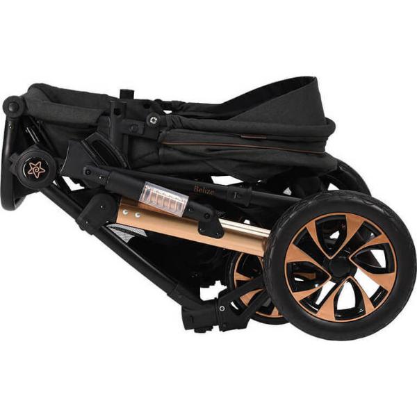 ΠΟΛΥΚΑΡΟΤΣΙ BELIZE 3 IN 1 GRAPHITE ΚΑΡΟΤΣΙ: Το πολυκαρότσι Belize 3 σε 1 είναι κατάλληλο για παιδιά βάρους από 0 έως 22 kg, ξεχωρίζει για την ποιότητα, τον καινοτόμο σχεδιασμό και το σύγχρονο design. Εναρμονίζεται με τον ευρωπαϊκό νόμο ΕΝ 1888. – Σκελετός αλουμινίου, εξαιρετικά ελαφρύς με εύκολη & γρήγορη αναδίπλωση – Εύκολο άνοιγμα & κλείσιμο με μια κίνηση – Εργονομική χειρολαβή ρυθμιζόμενη καθ’ ύψος – Δερμάτινες λεπτομέρειες στα χερούλια & στην προστασία – Αναδιπλούμενη XL τέντα με παράθυρο & Anti-UV για ηλιοπροστασία, με ειδικό δίχτυ στο πίσω μέρος για έξτρα αερισμό – Πρακτική θήκη για αποθήκευση μικροαντικειμένων – Αναστρέψιμη θέση – Ρυθμιζόμενη πλάτη & υποπόδιο – Ζώνη ασφαλείας 5 σημείων με επωμίδες – Αποσπώμενη μπροστινή προστασία – Ποτηροθήκη – Περιλαμβάνει ποδόσακο & αδιάβροχο που προστατεύει το παιδί από τον άνεμο ,τη βροχή & το κρύο – Μεγάλο, πρακτικό καλάθι – Ανθεκτικοί τροχοί με περιστροφή 360° – κλειδώνουν με διακόπτη – Αναρτήσεις για τη μέγιστη απορρόφηση των κραδασμών – 30%25 λιγότερη προσπάθεια ώθησης χάρη στο εξελιγμένο σύστημα που διαθέτει ο κάθε τροχός PORT-BEBE: Εγκεκριμένο για χρήση (0-6 μήνες), εξαιρετικά ευρύχωρο – Εφοδιασμένο με σύστημα γρήγορης τοποθέτησης/αφαίρεσης – Αντιολισθητική χειρολαβή – Ρυθμιζόμενη τέντα για προστασία από τον ήλιο και ειδικό δίχτυ στο πίσω μέρος για έξτρα αερισμό – Επενδεδυμένο εσωτερικά, με ανατομικό προσκέφαλο και ρυθμιζόμενη πλάτη, για σωστή στήριξη του νεογέννητου – Εύκολο και πρακτικό κλείσιμο για αποθήκευση ΚΑΘΙΣΜΑ ΑΥΤΟΚΙΝΗΤΟΥ: Εναρμονίζεται με τον νόμο ECE R44/04 για το group 0+ (0-13kg) – Εφοδιασμένο με σύστημα γρήγορης τοποθέτησης/αφαίρεσης – Προστασία πλευρικής πρόσκρουσης, – Ανατομικό προσκέφαλο και πλάτη, για σωστή στήριξη του νεογέννητου – Ρυθμιζόμενη τέντα για προστασία από τον ήλιο – Ζώνη 3 σημείων με επωμίδες – Πρακτικός μηχανισμός ρύθμισης των ζωνών – Λικνιστή βάση για να μετατρέπεται σε ρηλάξ μέσα στο σπίτι – Τοποθετείται με την ζώνη ασφαλείας 3 σημείων του αυτοκινήτου με κατεύθυνση προς τα πίσω