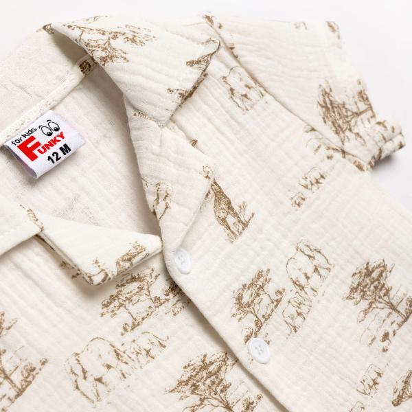 Βρεφικό σετ βαμβακερό πουκάμισο αγόρι εκρού-μπεζ FUNKY 126-822120-1