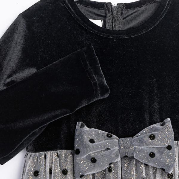 Φόρεμα μακρυμάνικο βελουτέ για κορίτσι, σε μαύρο χρώμα με τούλι και φιόγκο.