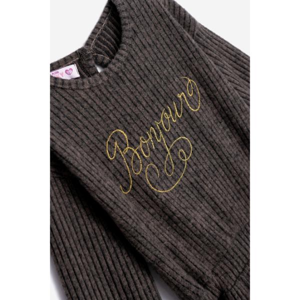 Φόρεμα για κορίτσι 1-6 χρονών σε χρώμα σκούρο καφέ. Τύπωμα μπροστά με χρυσά γράμματα. Λάστιχο στις μανσέτες.