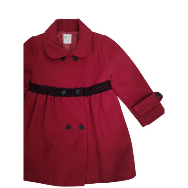 Παλτό για κορίτσι σε μπορντώ χρώμα με εσωτερική φόδρα και γιακά, λεπτομέρεια με μαύρη δαντέλα γύρω απο τη μέση.