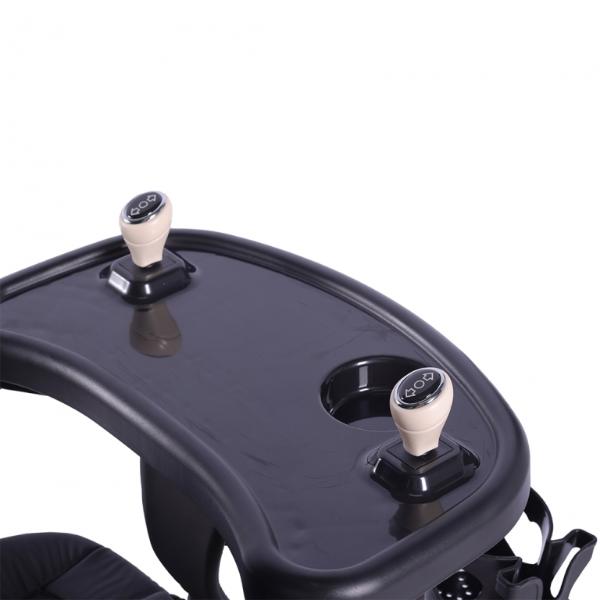 – Περιλαμβάνει χειριστήριο για τις λειτουργίες του, τσαντάκι για αποθηκευτικό χώρο, ποδόσακο με φερμουάρ και ποτηροθήκη με θήκη για smartphone.