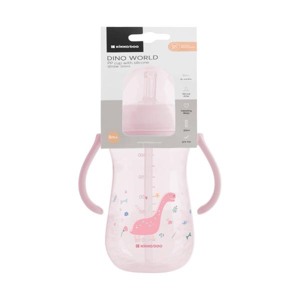 Kikka Boo Ποτήρι Με Λαβές Και Καλαμάκι Σιλικόνης 300ml Dino World Pink 31302030076