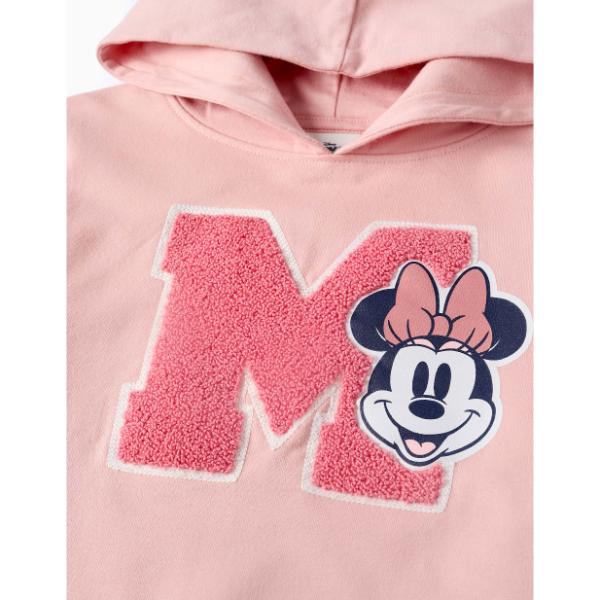 Ροζ φούτερ αχνούδιαστο, με κουκούλα για κορίτσια, 100% βαμβάκι. Μεγάλη μπροστινή στάμπα Minnie με λεπτομέρειες σε μπουκλέ. Στρίφωμα με ραβδώσεις και μανσέτες για τέλεια εφαρμογή. Μαλακό πλεκτό εσωτερικό για μέγιστη άνεση. Ένα πρακτικό και άνετο φούτερ από το σύμπαν της Disney.