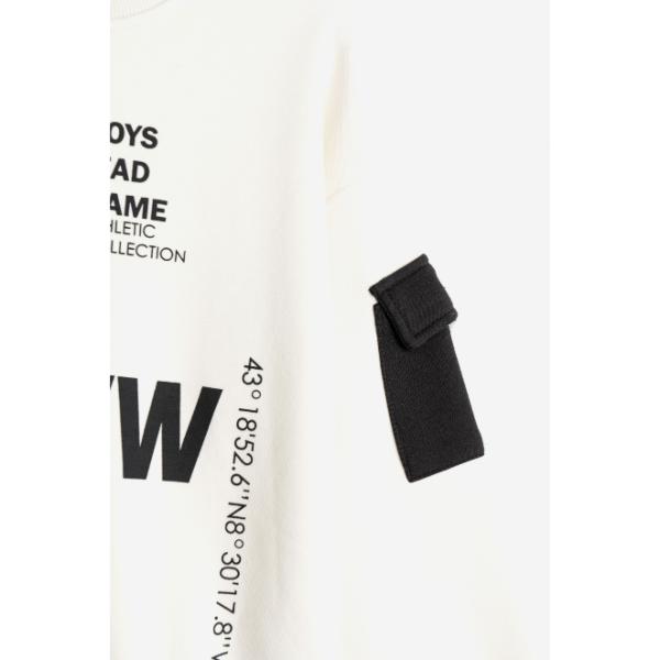 Μπλούζα φούτερ μακρυμάνικη για αγόρι από 6 έως 16 ετών, σε λευκό χρώμα με ολόσωμο τύπωμα και μικρό τσεπάκι στο μανίκι.