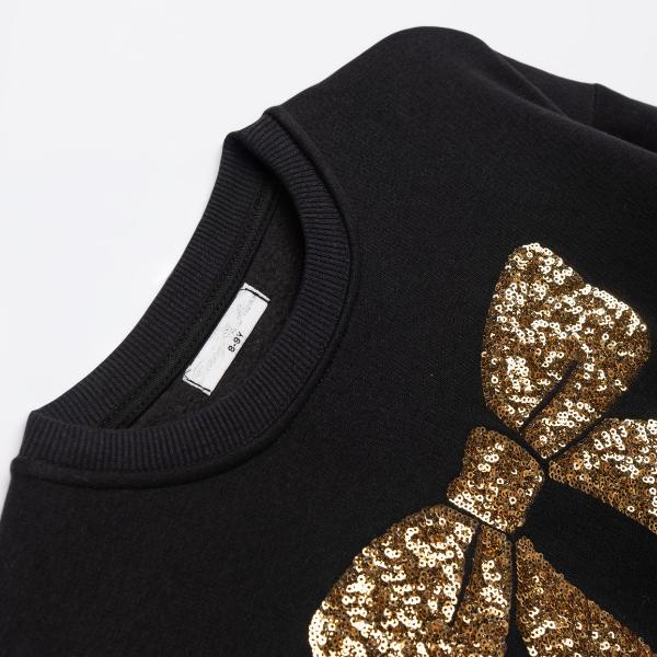 Μπλούζα φούτερ μακρυμάνικη για κορίτσι, σε χρώμα μαύρο με φιόγκο από χρυσή παγιέτα μπροστά..