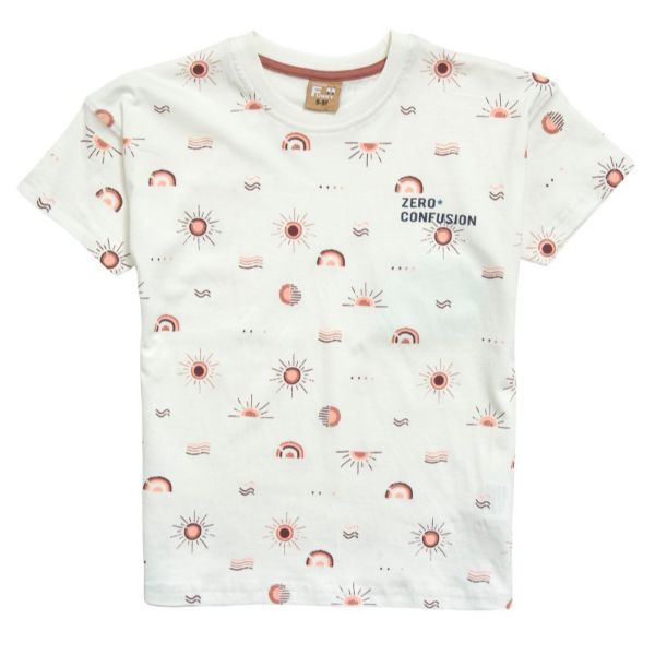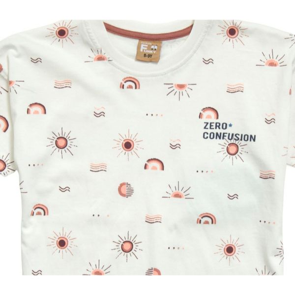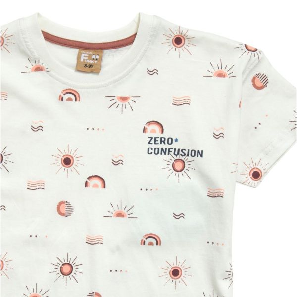 Μπλούζα κοντομάνικη για αγόρι σε χρώμα εκρού allover FUNKY 123-105118-1