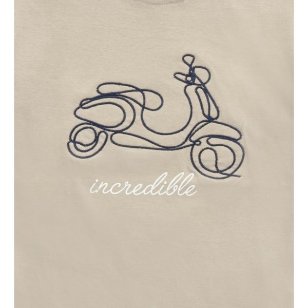 Μπλούζα κ/μ για αγόρι από 6 έως 16 ετών, σε σκούρη μπεζ απόχρωση, με τύπωμα μηχανή. Ποιότητα 100% cotton.