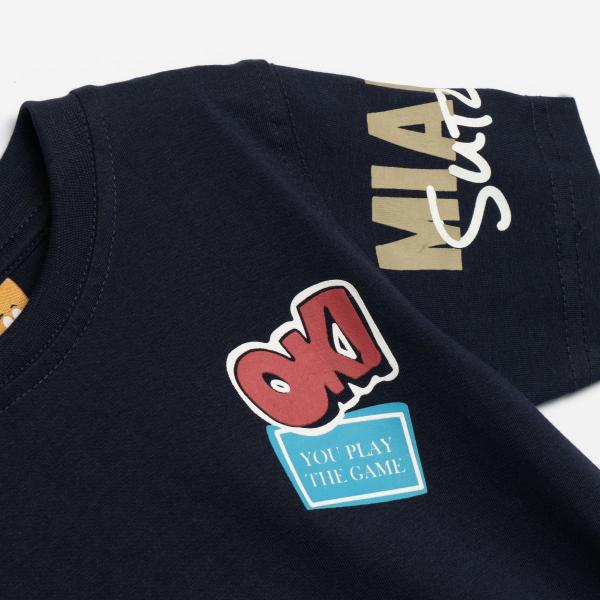Μπλούζα κοντομάνικη μακό για αγόρι από 1 έως 6 ετών σε σκούρο μπλε χρώμα με τύπωμα .
