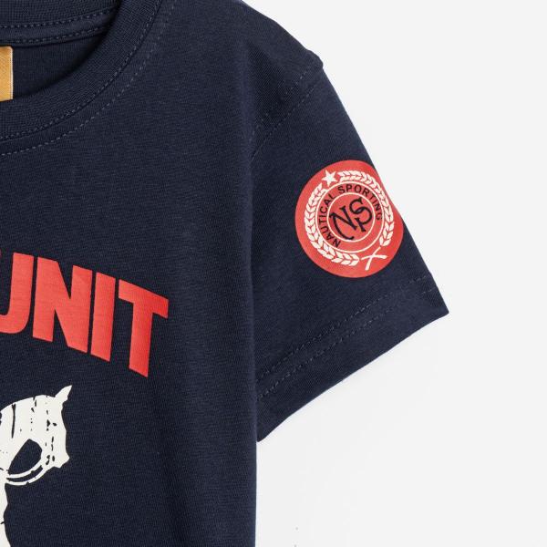 Μπλούζα κοντομάνικη μακό για αγόρι από 1 έως 6 ετών σε μπλε χρώμα με τύπωμα .