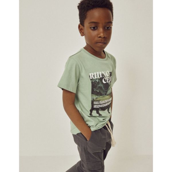 Κοντομάνικο μπλουζάκι πράσινο για αγόρια, 100% βαμβάκι. Τυπωμένη εσωτερική ετικέτα για να μην ερεθίζει το δέρμα.