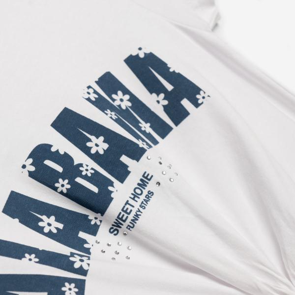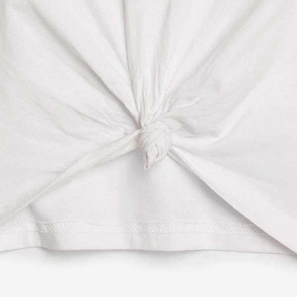 Μπλούζα κοντομάνικη μακό για κορίτσι από 6 έως 16 ετών σε λευκό χρώμα με τύπωμα και μοντέρνο δέσιμο στην κοιλιά.