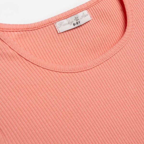 Μπλούζα κοντομάνικη μακό ριπ  για κορίτσι από 6 έως 16 ετών σε ροζ χρώμα με ανοιγματάκια στα πλαϊνά με φιογκάκια.
