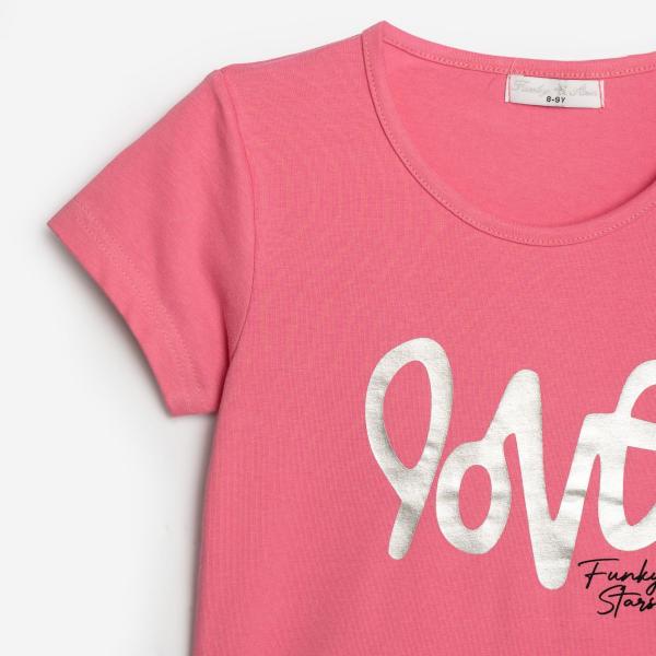 Μπλούζα μακό κοντομάνικη για κορίτσι σε χρώμα ροζ FUNKY 125-505111-2