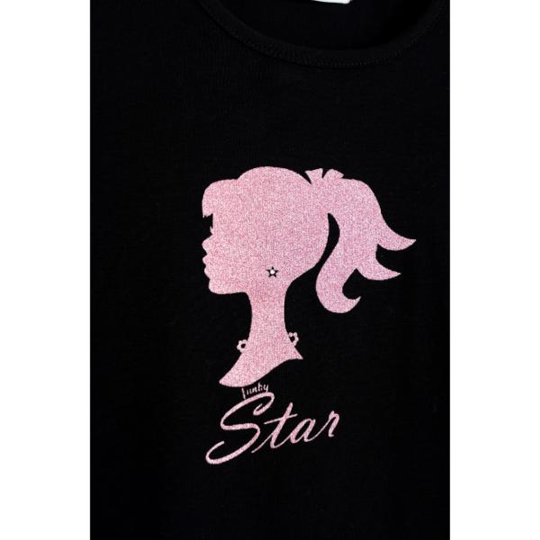Μπλούζα μακό μακρυμάνικη για κορίτσι από 6 ως 16 ετών, σε χρώμα μαύρο. Ροζ τύπωμα της Barbie μπροστά με γκλίτερ.