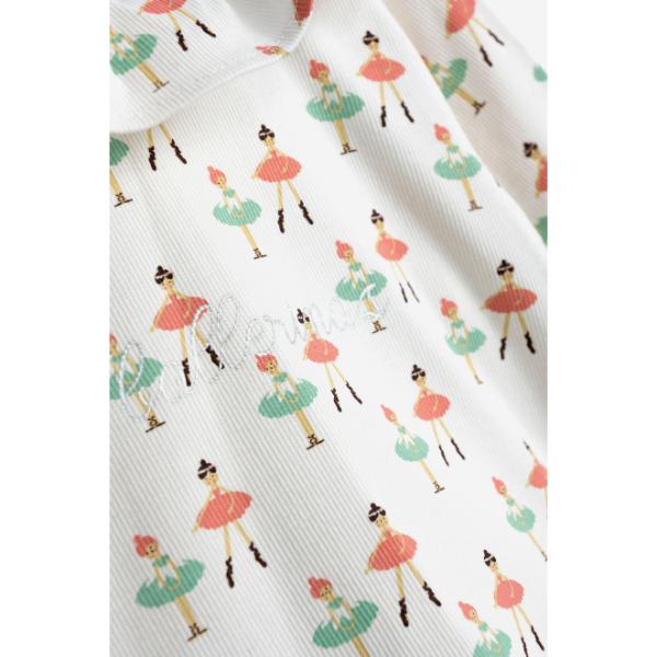 Μπλούζα μακό μακρυμάνικη για κορίτσι από 1 έως 6 ετών, σε χρώμα εκρού με ολόσωμο τύπωμα μπαλαρίνες. Βολάν στ0 γιακά.