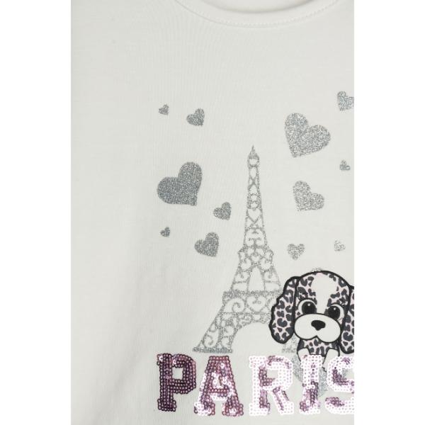 Μπλούζα μακό μακρυμάνικη για κορίτσι από 1 έως 6 ετών, σε χρώμα εκρού με τύπωμα μπροστά και λεπτομέρειες με γκλίτερ ασημί.