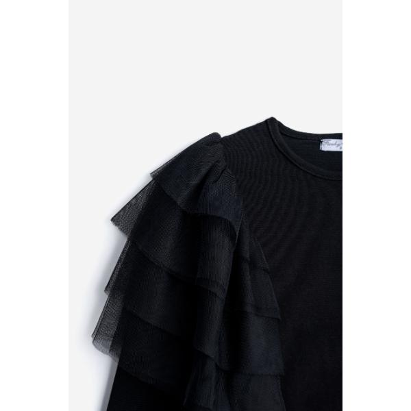 Μπλούζα μακό μακρυμάνικη για κορίτσι από 6 ως 16 ετών, σε χρώμα μαύρο, λεπτομέρειες με τούλι.