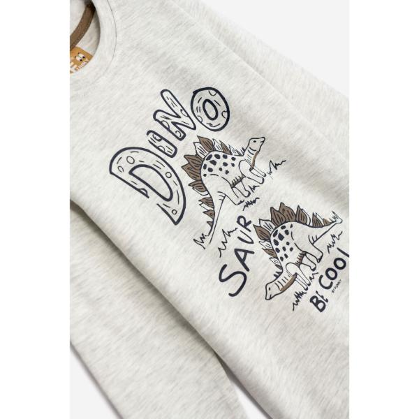 Μπλούζα μακρυμάνικη για αγόρι από 1 έως 6 ετών, σε χρώμα εκρού μελανζέ με τύπωμα δεινόσαυρους.