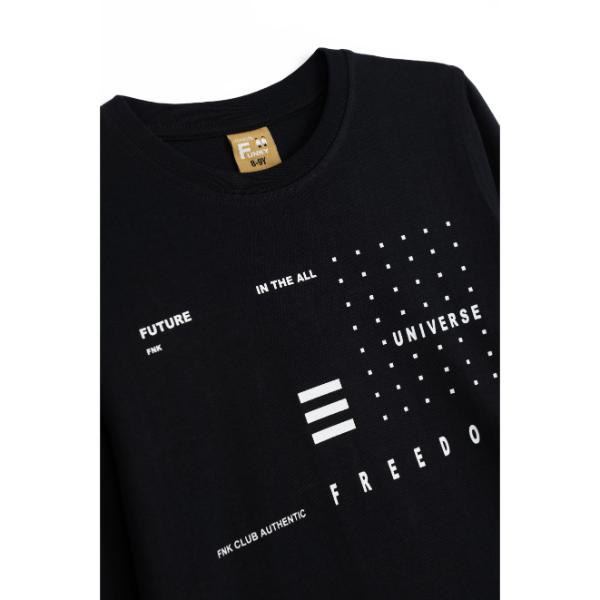 Μπλούζα μακό μακρυμάνικη για αγόρι από 6 έως 16 ετών, σε μαύρο χρώμα με τύπωμα μπροστά.