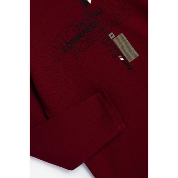 Μπλούζα μακό μακρυμάνικη για αγόρι από 6 έως 16 ετών, σε μπορντό χρώμα με τύπωμα μπροστά.