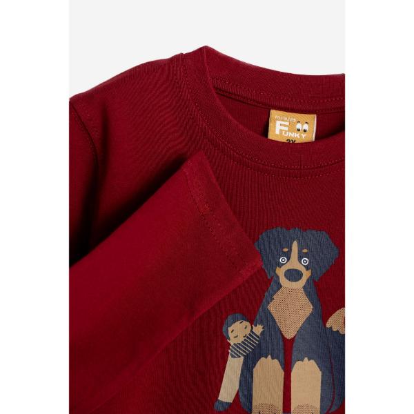 Μπλούζα μακρυμάνικη για αγόρι από 1 έως 6 ετών, σε χρώμα μπορντό με τύπωμα σκυλάκι.