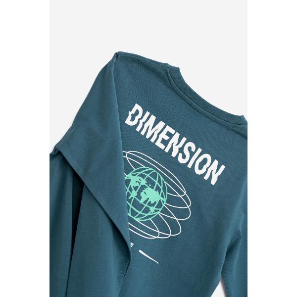 Μπλούζα μακό μακρυμάνικη για αγόρι από 6 έως 16 ετών, σε σκούρο πράσινο χρώμα με τύπωμα μπροστά και πίσω.