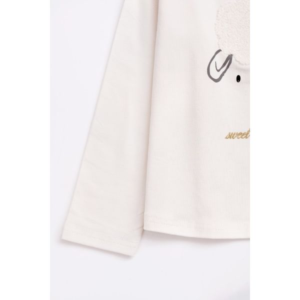 Μπλούζα μακρυμάνικη για κορίτσι από 1 έως 6 ετών, σε χρώμα εκρού με τύπωμα μπροστά.