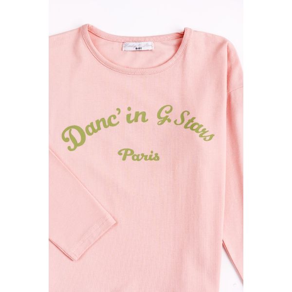 Μπλούζα μακρυμάνικη για κορίτσι από 6 ως 16 ετών, σε χρώμα nude ροζ με τύπωμα στο μπροστινό μέρος.