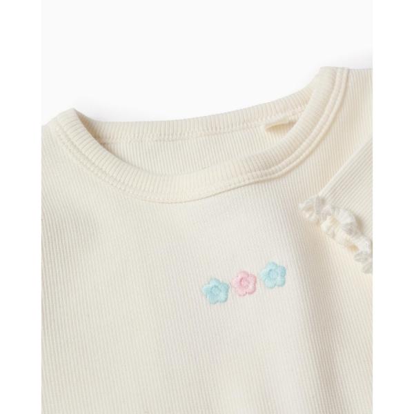 Εκρού μπλουζάκι ριπ για κορίτσια, με φλοράλ κέντημα. Κατασκευασμένο από βαμβάκι με ένα άγγιγμα ελαστικότητας για μεγαλύτερη άνεση και ελευθερία κινήσεων. Κυματιστές άκρες για γυναικεία πινελιά. Τυπωμένη εσωτερική ετικέτα για να μην ερεθίζει το δέρμα.