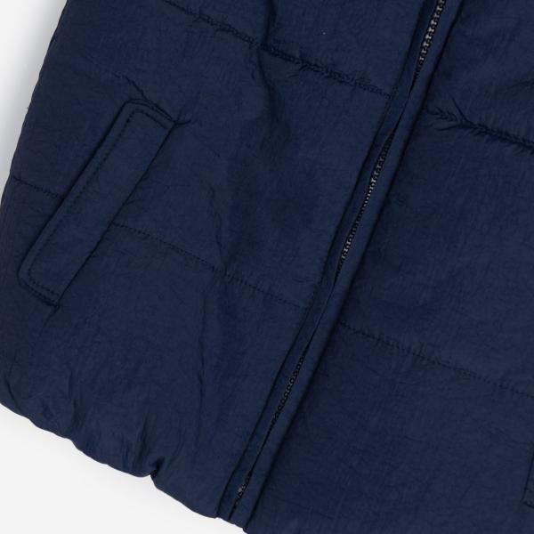 Μπουφάν αμάνικο για αγόρι από 1 ως 6 ετών σε χρώμα σκούρο μπλε. Κλείνει με φερμουάρ, δύο πλάγιες τσέπες.