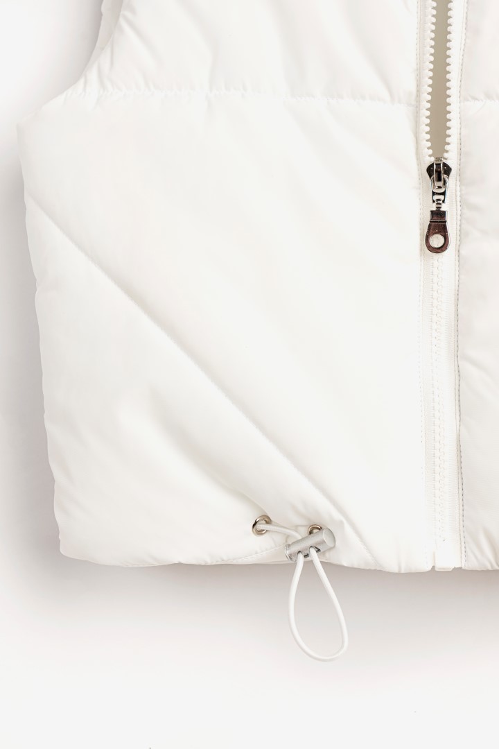 Μπουφάν αμάνικο για κορίτσι 6 ως 16 ετών, σε χρώμα λευκό. Κλείνει μπροστά με φερμουάρ.
