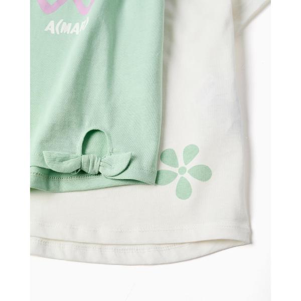 Πακέτο δύο μπλουζάκια για κορίτσια, 100% βαμβάκι. Περιλαμβάνει ένα φιστικί και ένα λευκό μπλουζάκι με στάμπα μπροστά. Τυπωμένες εσωτερικές ετικέτες για να μην ερεθίζουν το δέρμα. Ένα σετ από ελαφριά και άνετα μπλουζάκια, ιδανικά για καλοκαιρινές διακοπές! We Care: προϊόν με πιστοποιητικό Oeko-Tex Standard 100, το οποίο εγγυάται την απουσία επιβλαβών ή ερεθιστικών ουσιών για το δέρμα.