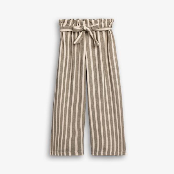 Παντελόνα για κορίτσι από 6 ως 16 ετών, σε χρώμα γκρι ριγέ. Μαλακό, δροσερό ύφασμα, με λάστιχο στη μέση και ζωνάκι.