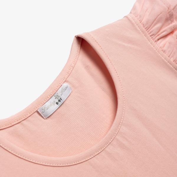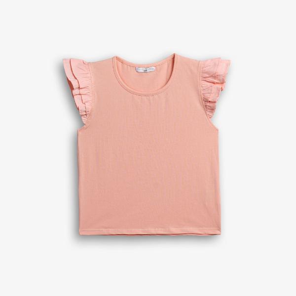 Παιδική καλοκαιρινή μπλούζα, αμάνικη ,με βολάν μανίκι σε ροζ χρώμα.