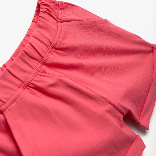 Σετ καλοκαιρινό για κορίτσι από 2 έως 6 ετών. Μπλούζα αμάνικη σε χρώμα ανθρακί με τύπωμα και σορτς σε χρώμα ροζ με λάστιχο στη μέση.