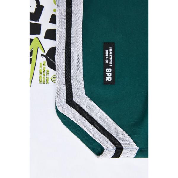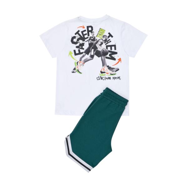 Σετ κοντομάνικη μπλούζα με τύπωμα μπροστά και πίσω σε χρώμα λευκό και βερμούδα σε χρώμα πράσινο κυπαρισσί, για αγόρι 6-16 ετών.