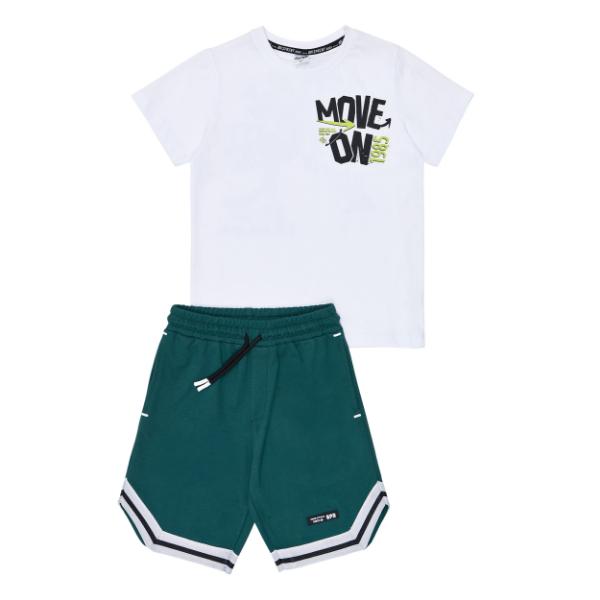 Παιδικό σετ καλοκαιρινό βερμούδα αγόρι λευκό-πράσινο Sprint 261-3008-100