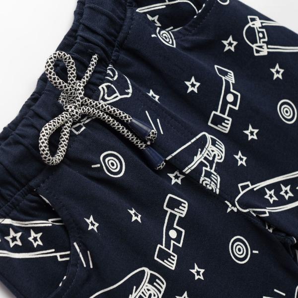 Σετ για αγόρι από 2 έως 6 ετών. Μπλούζα μακό κοντομάνικη, σε χρώμα κόκκινο, με τύπωμα μπροστά. Σορτς μακό, σε χρώμα μπλε με ολόσωμο τύπωμα, λάστιχο και κορδόνι στη μέση.