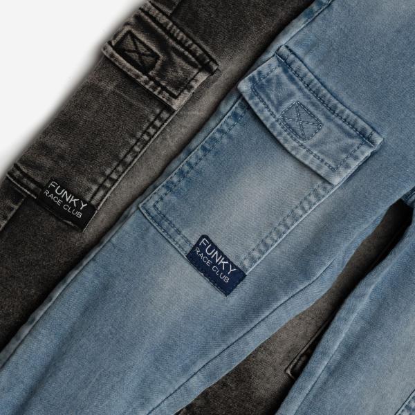 Παντελόνι φούτερ τζιν cargo για αγόρι σε χρώμα μπλε FUNKY 125-312100-2