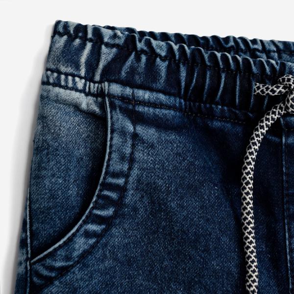 Παντελόνι φούτερ τζιν για αγόρι από 1 έως 6 ετών, σε μπλε χρώμα με  λάστιχο και κορδόνι στη μέση για μεγαλύτερη άνεση. Λάστιχο στο ποδόγυρο.