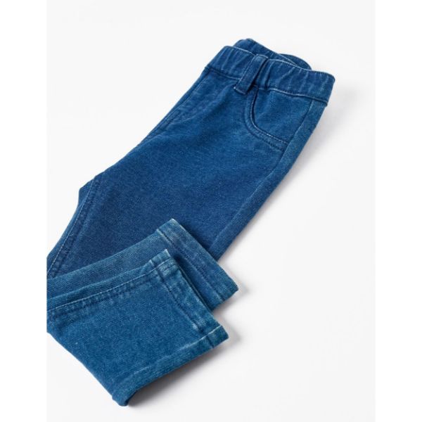 Μπλε τζιν για κοριτσάκια σε σκούρο μπλε χρώμα, κατασκευασμένο από ελαστικό βαμβάκι για μεγαλύτερη ελευθερία κινήσεων. Εσωτερικό με μαλακό πλέγμα για μεγαλύτερη άνεση. Λάστιχο στη μέση και δυο διακοσμητικές τσέπες μπροστά.