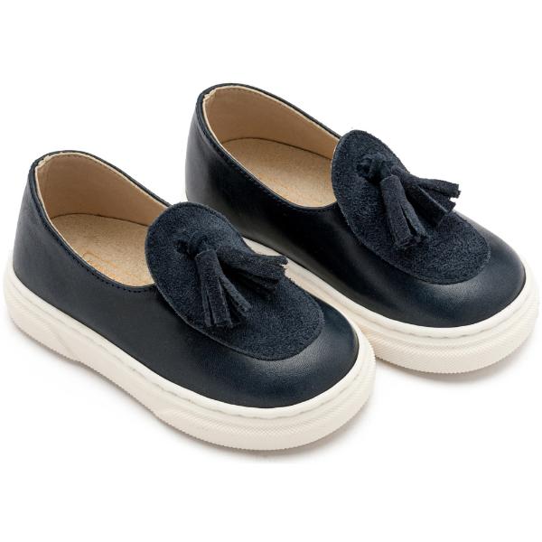 Δερμάτινα loafer με φουντάκια, σε Μπλε Χρώμα.