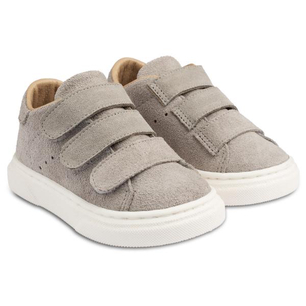 Δερμάτινο μονόχρωμο sneaker με τριπλή μπαρέτα χρατς, σε γκρι χρώμα.