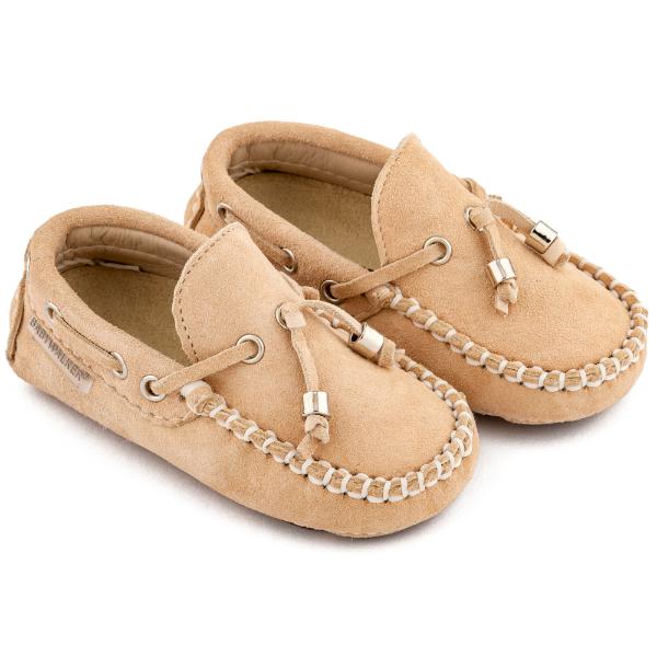 Καστόρινο δετό μοκασίνι από δέρμα suede, σε μπεζ χρώμα.