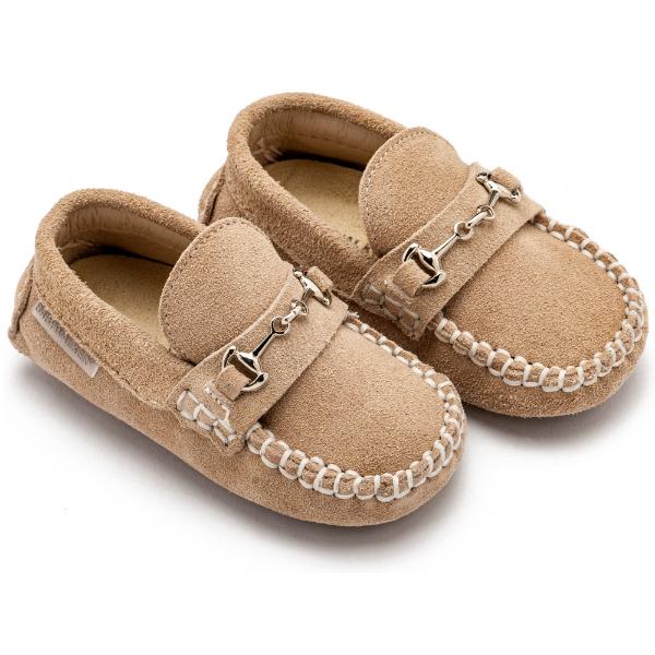 Καστόρινα loafer με μεταλλική διακοσμητική αγκράφα, σε μπεζ χρώμα.