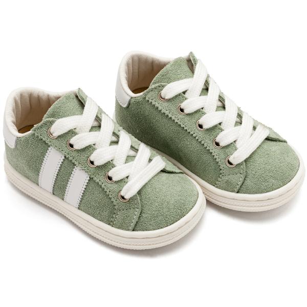 Δίχρωμα καστόρινα δετά σνίκερς, σε μέντα-λευκό χρώμα.