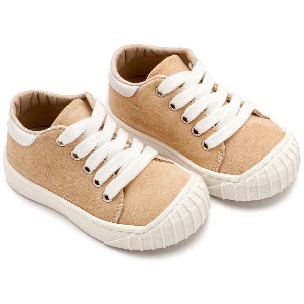Δετό καστόρινο sneaker, σε μπεζ χρώμα.